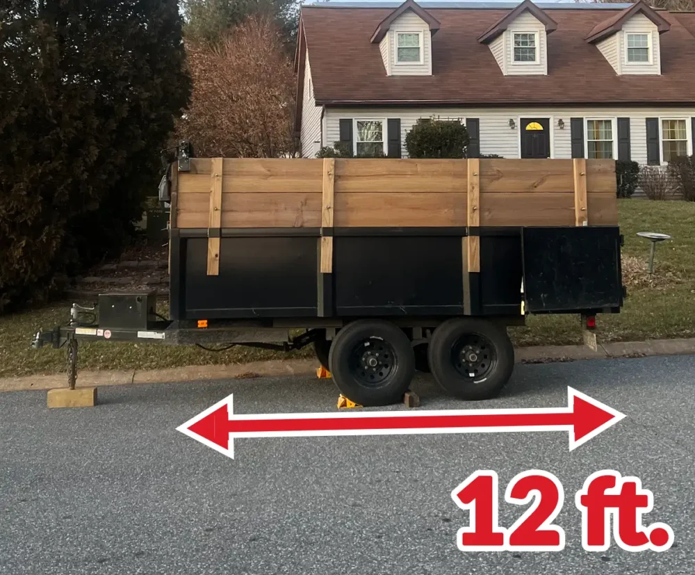 Our smallest trailer available is approximately 10 cubic yards (6’x12’x4′) in length. This size trailer is ideal for smaller projects like a single-room cleanup, a garage cleanout, or even the removal of yard debris. Household junk like broken appliances and unused furniture fit with room to spare.