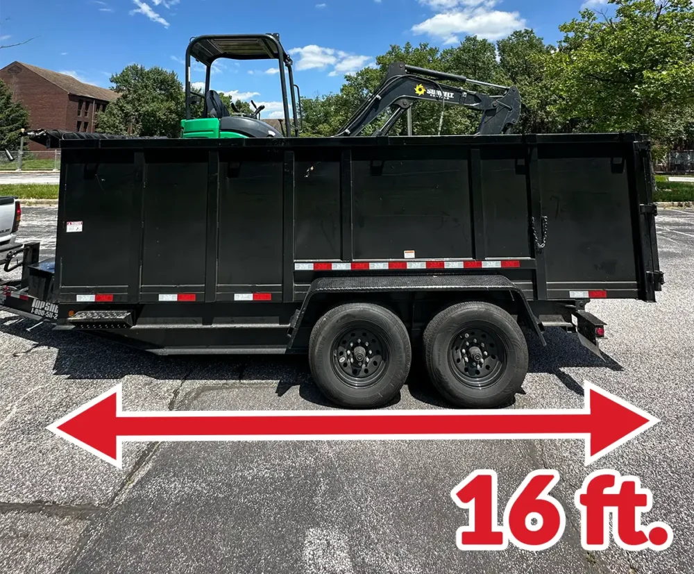 Our largest size trailer available is approximately 17 cubic yards (7’x16’x4′). This dumpster trailer is great for medium to large-sized projects like a major renovation or summer cleanout. This trailer is also a great option for a range of waste from construction-related cleanups, like roof debris.
