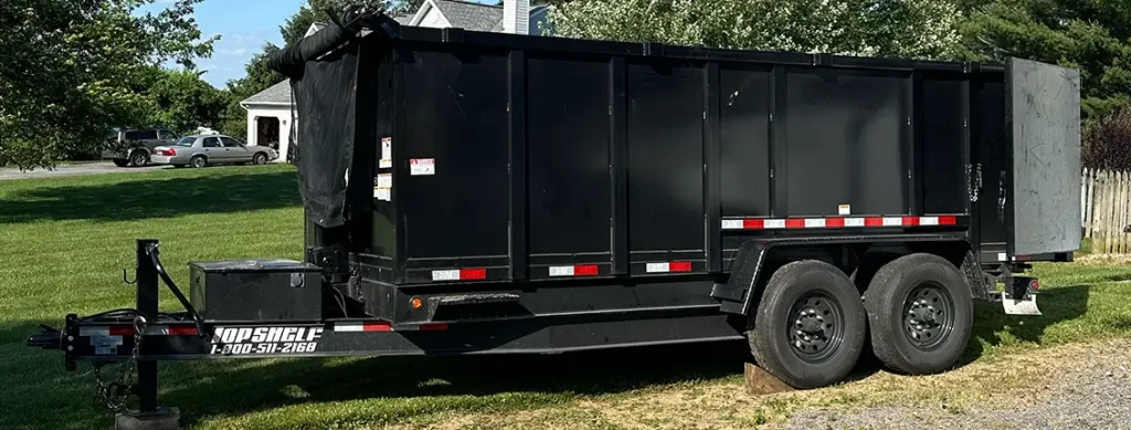 While smaller, our dumpster trailers are capable of accepting all the typical junk of any roll off dumpster. Because these dumpsters are compact, they fit more easily into your driveway or street, meaning that you won’t need to pay for a permit. We’ve also modified our dumpster trailers to be lower to the ground for easy loading.